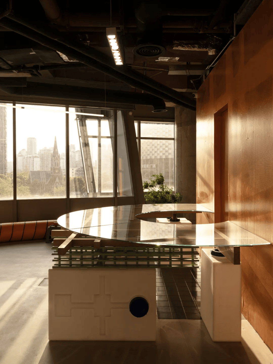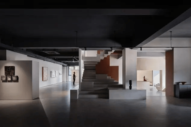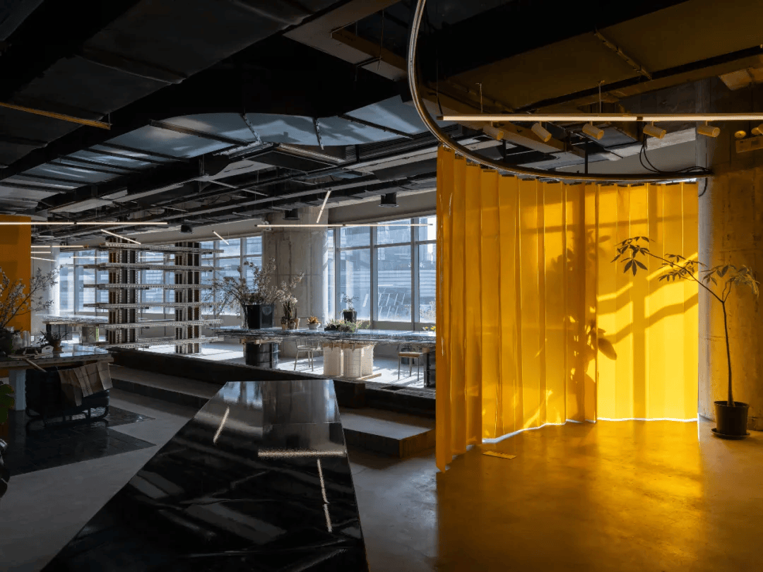 位于上海静安曹家渡中心的889GLO艺术空间,由SpActrum谱观设计,立足于激活社区艺术文化与多元社交。设计延续其“建造的风景”理念,以楼承板、砖机托板、混凝土模架、工业油桶、冷却塔散热片等工业建造材料,转译为空间家具与灯具,反映被忽视的消费与建造体系,形成独特的“消费的风景”。空间拆除隔断,保留混凝土本色与彩色天花,PVC苫布、工业防火帘构建流动分隔,创造无界限的Cafe、书库、剧场、花艺区等场景,提出设计不仅解决问题,更应引发对社会、生态与美学的思考。