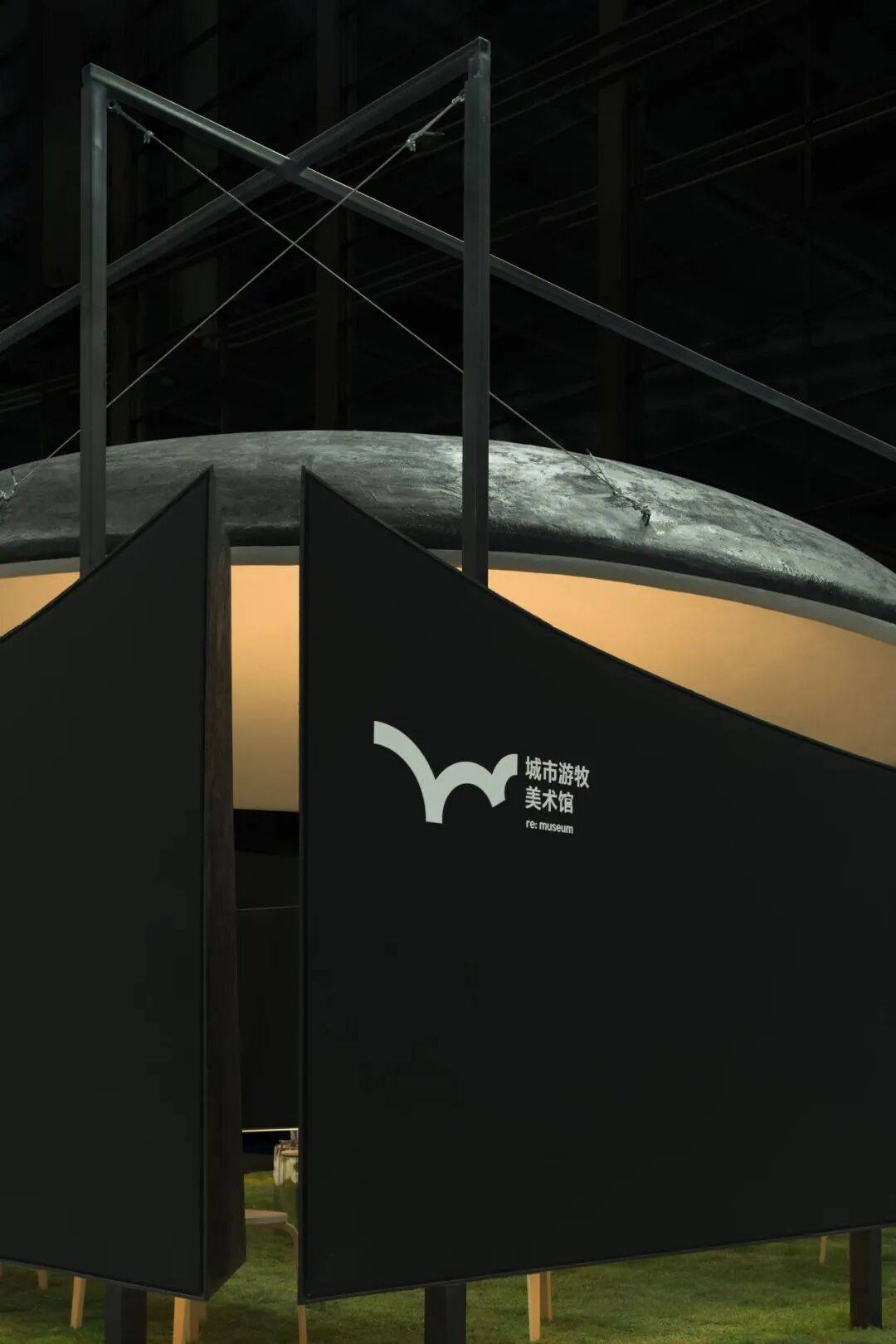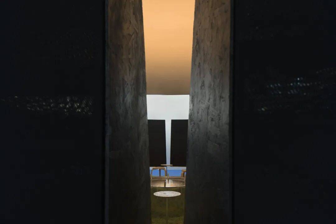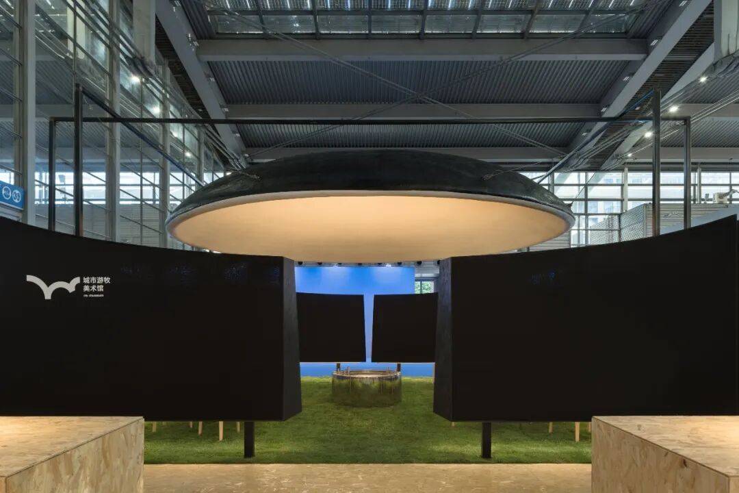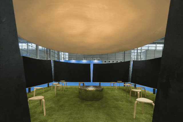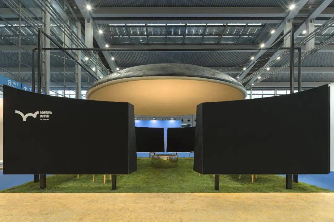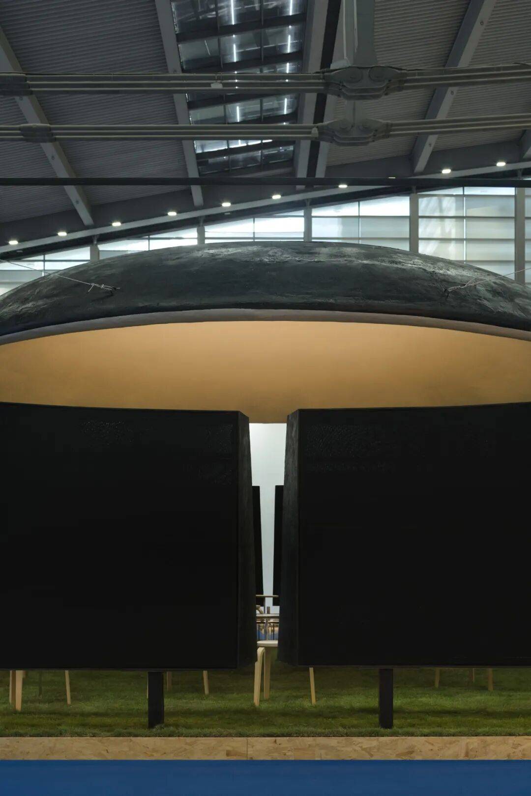 02. 苍穹与边界:空间气质的隐性塑造 穹顶是空间的核心元素,4.5米的高度既无压迫感,也保持适度距离,成为承接光影变化的界面。多片弧形墙体构成"开放的边界",分隔个体位置却不阻断视线,声音与光影的流动,让空间兼具内向凝聚力与公共开放性。整个展位不依赖符号讲述品牌,而是以尺度,节奏与边界关系,塑造出克制,包容的空间气质。