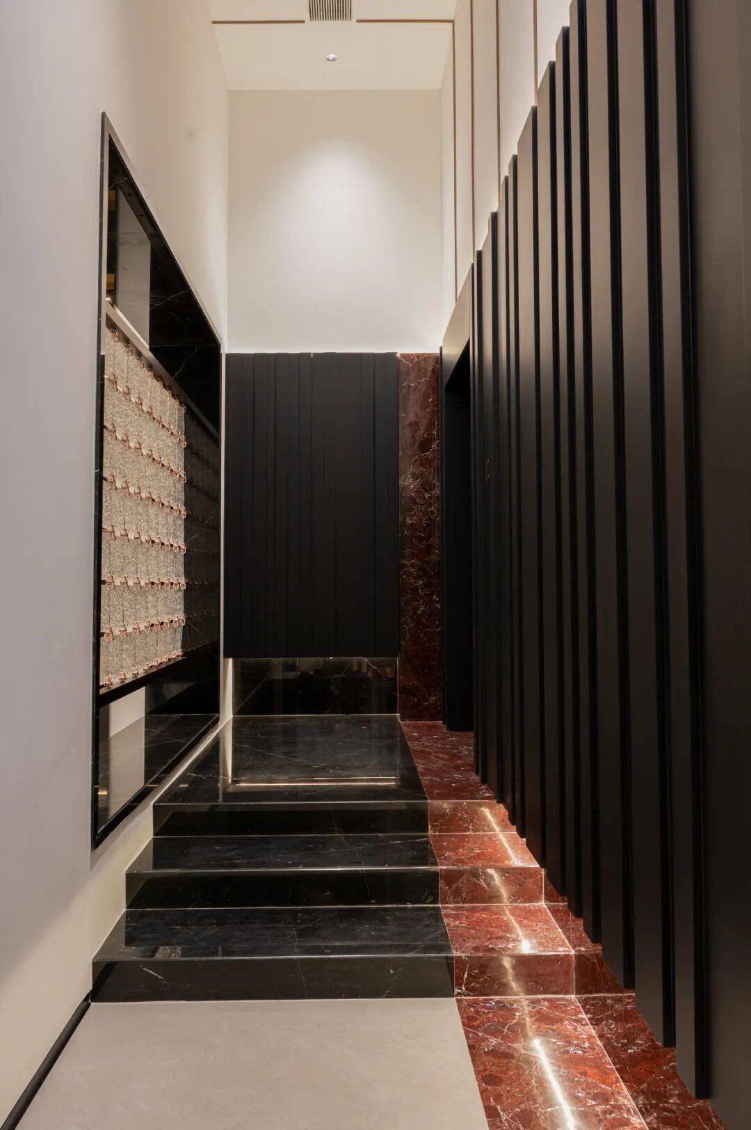 迎接的仪式,待客的品位 以及居住者的个性 都以设计的语言向到来者直白传达 相对于地下两层的开放共享性 一二层空间更侧重于家人相处的私密 入户区域