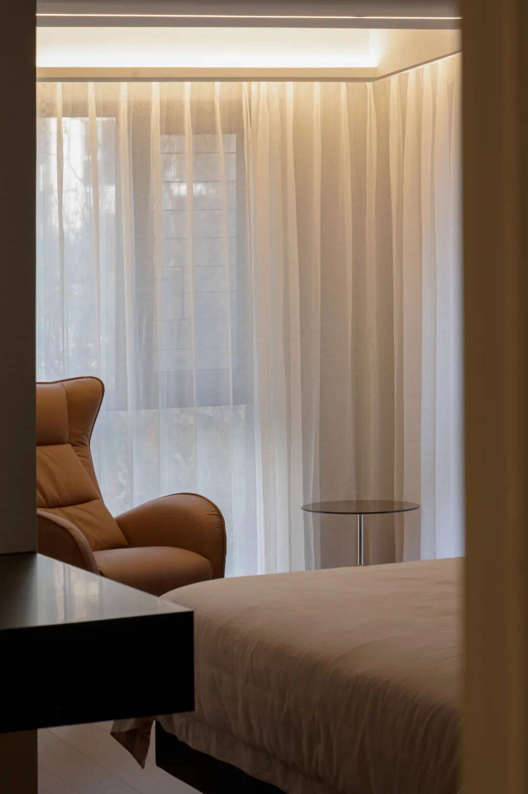 主卧 涂料的肌理、温润的木质、艺术感的家具,让卧室空间多了些曼妙、灵动的意蕴,或自由,或艺术,或时尚亦或优雅,在同一空间中灵活切换、融合。