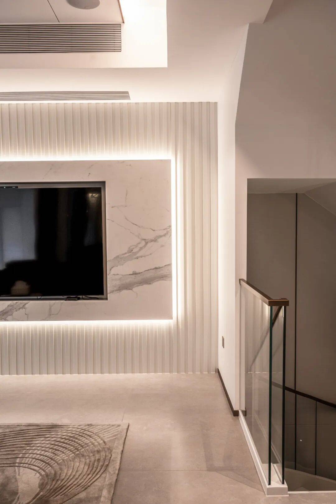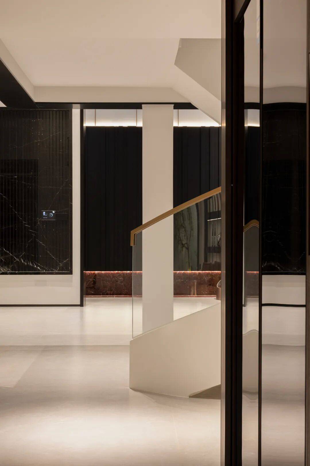 楼梯以一种近乎诗意的姿态静静伫立,讲述着关于家的故事与温情。设计师巧妙地将楼梯与周围的环境融为一体,利用光影变化,营造出温馨的氛围。暖黄色的灯光沿着楼梯的曲线缓缓流淌,又赋予了空间一种难以言喻的魔力。