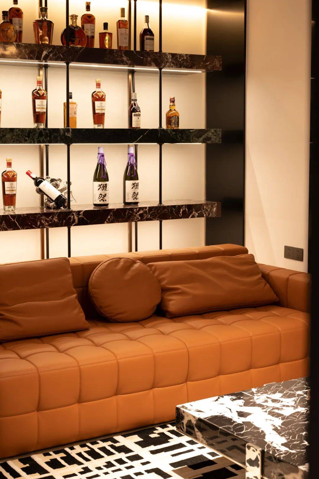 品酒区域 品酒区域,宽敞明亮,暖白色的墙面在灯光的照耀下,散发出柔和而温馨的气息。橙色沙发在这品酒的“走秀场”中无疑成为了最耀眼的明星。它以其独特的色彩与魅力,让家人在享受美酒的同时,也能感受到时尚与艺术的熏陶。