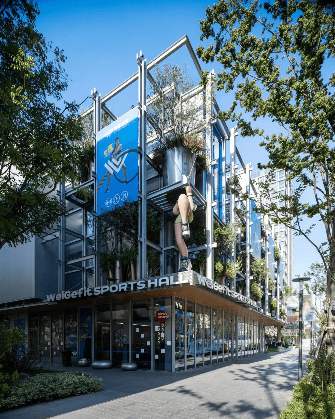 “理想之地”位于嘉定新城站东侧,总规模近60万㎡,以小街区、密路网与15分钟生活圈为框架,形成办公、商业与公共服务垂直混合的活力社区。示范区内,春熙集约3000㎡,以通高中庭与室内街巷组织市集空间,钢木组合双坡顶结合光伏屋面、立体绿化与被动式通风,实践低碳建造。鼓浪馆作为社区体育中心,整合泳池、球类馆与开放架空空间,锯齿屋顶引入北向采光,立面悬挂绿化构架强化健康意象。两者共同构建绿色、复合、可持续的未来社区样本。