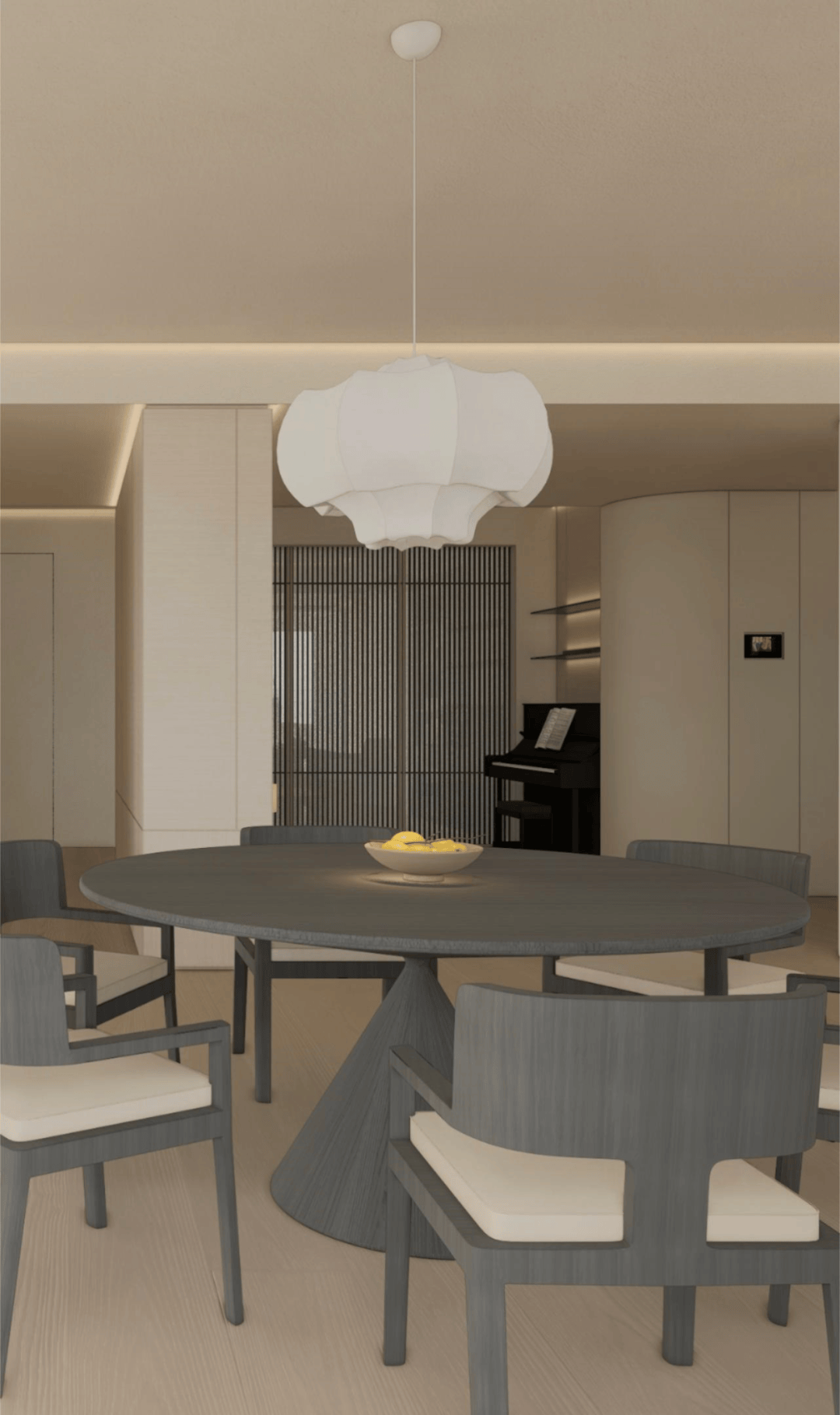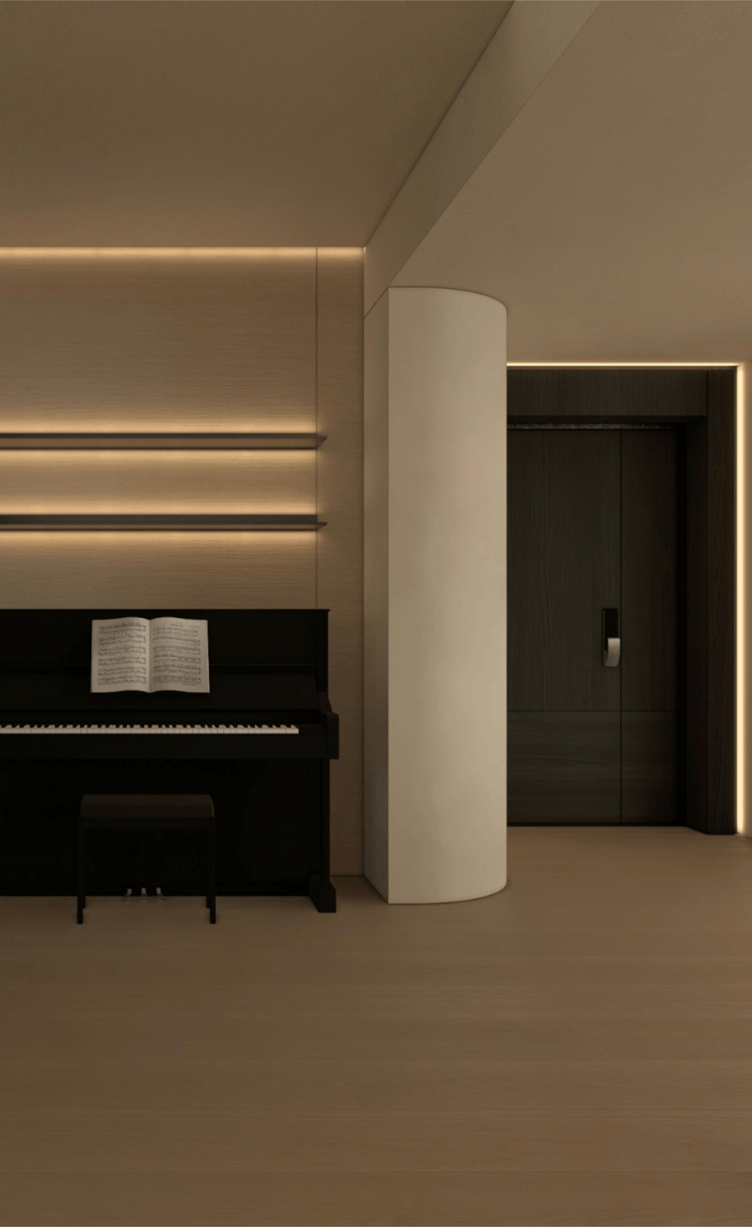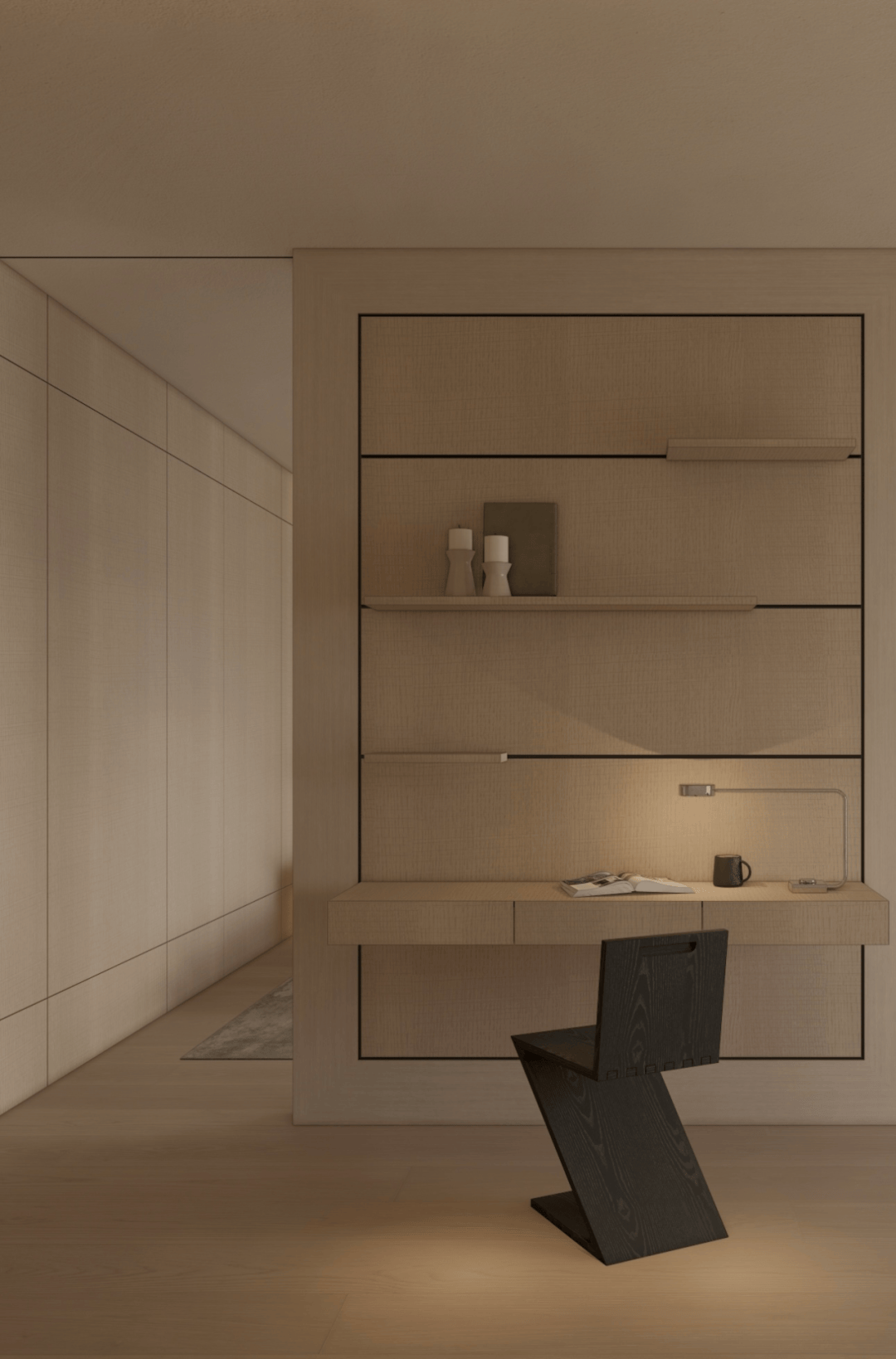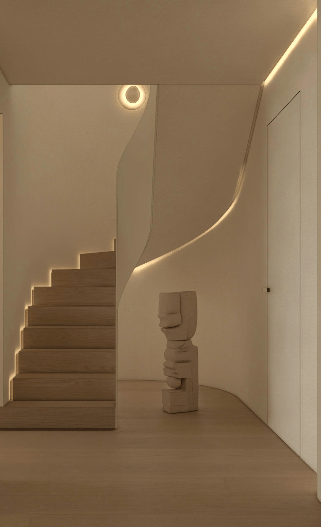 从素色的呼吸感,到光影的仪式感,再到艺术的精神意,这方玄关践行着「极简静奢」的核心:它不追求表面夺目,而是让空间成为 「精神的容器」。当指尖触到木的温润,目光落进画的朦胧,光影在墙面漾出涟漪时,真正的玄关,是「生活与美学的第一重共鸣」,是「心灵栖居的序章」。