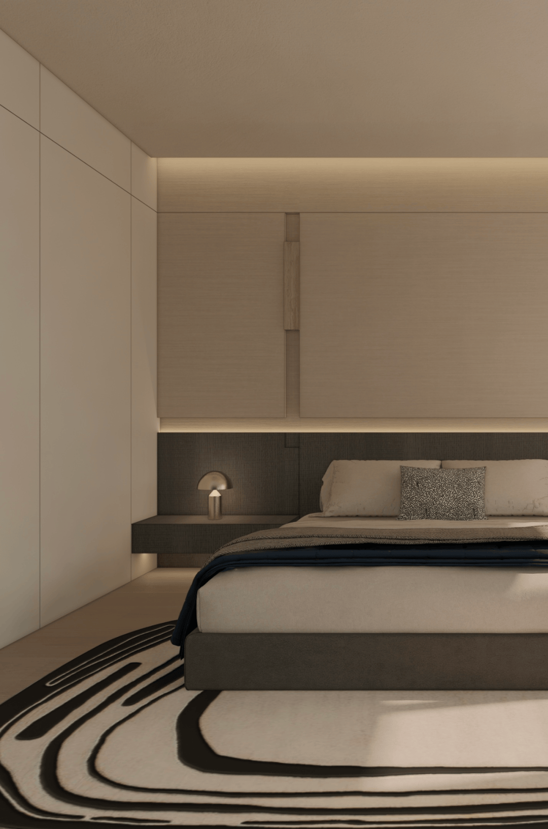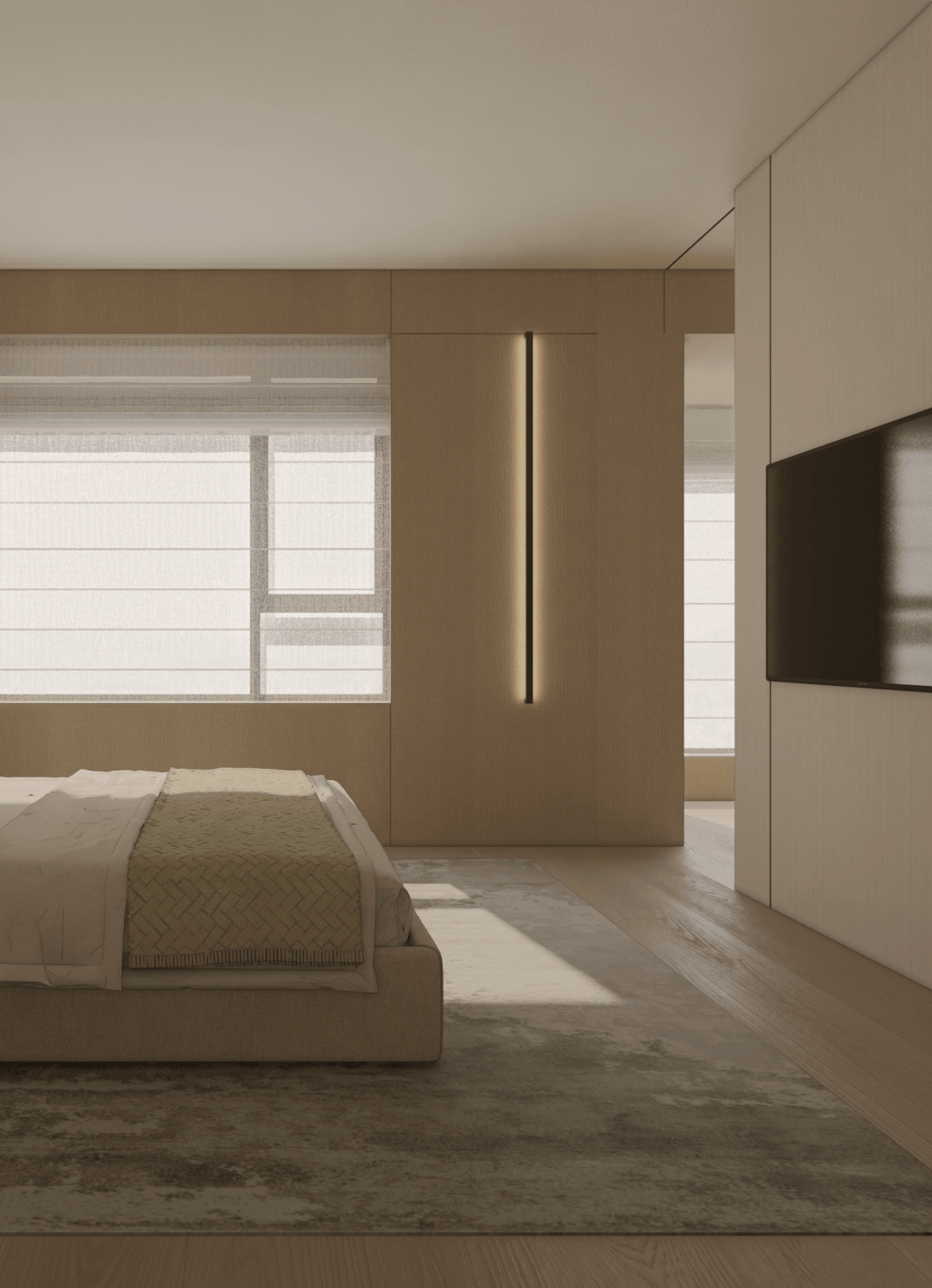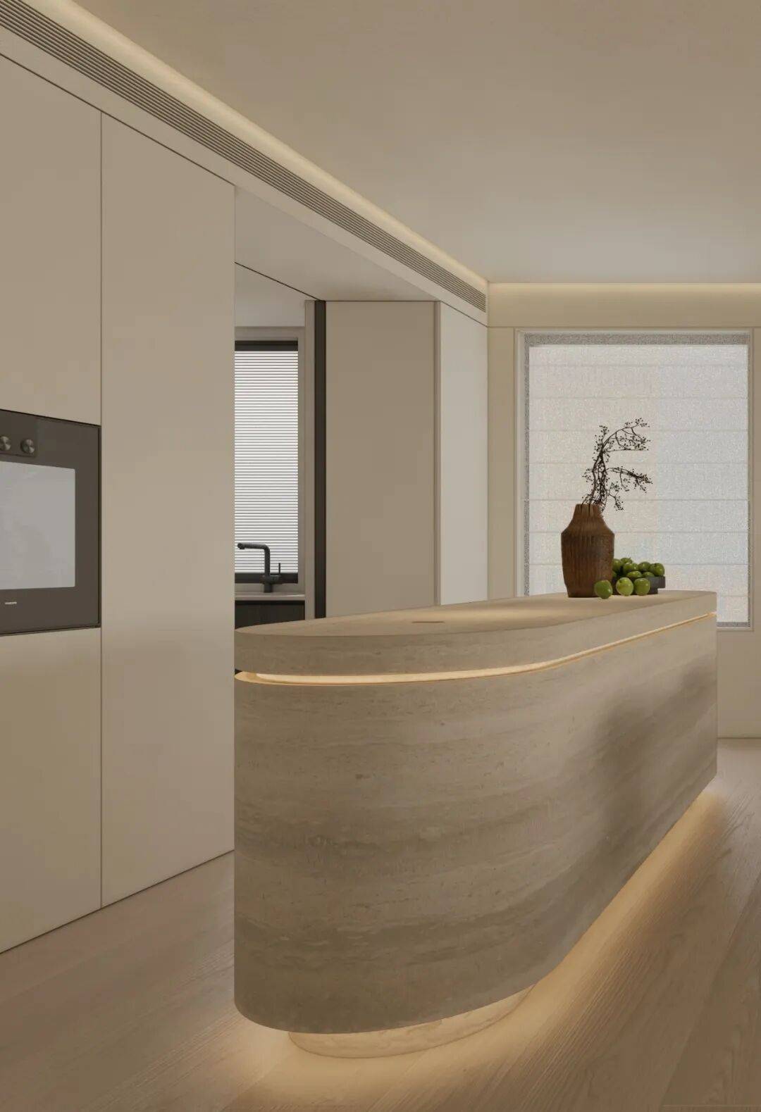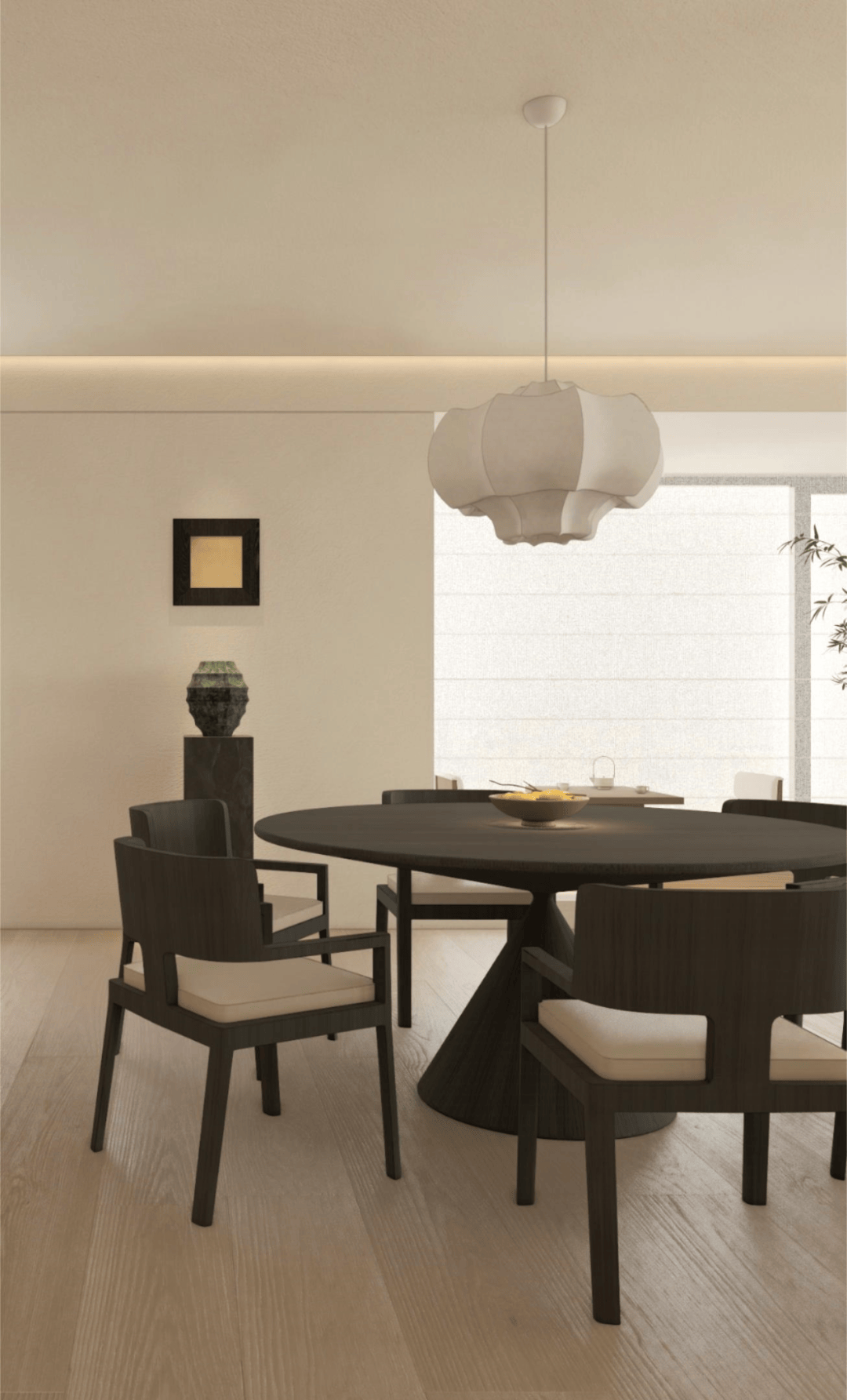 从素色的呼吸感,到光影的仪式感,再到艺术的精神意,这方玄关践行着「极简静奢」的核心:它不追求表面夺目,而是让空间成为 「精神的容器」。当指尖触到木的温润,目光落进画的朦胧,光影在墙面漾出涟漪时,真正的玄关,是「生活与美学的第一重共鸣」,是「心灵栖居的序章」。